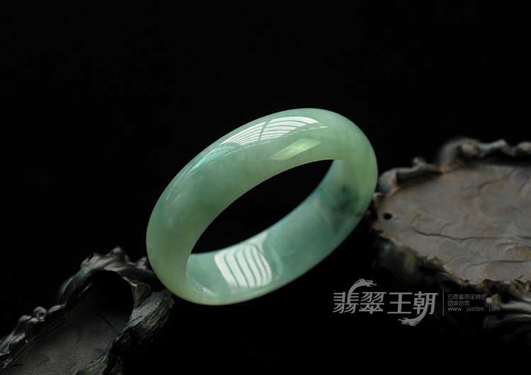 糯冰种翠色圆条手镯(55.5mm)
